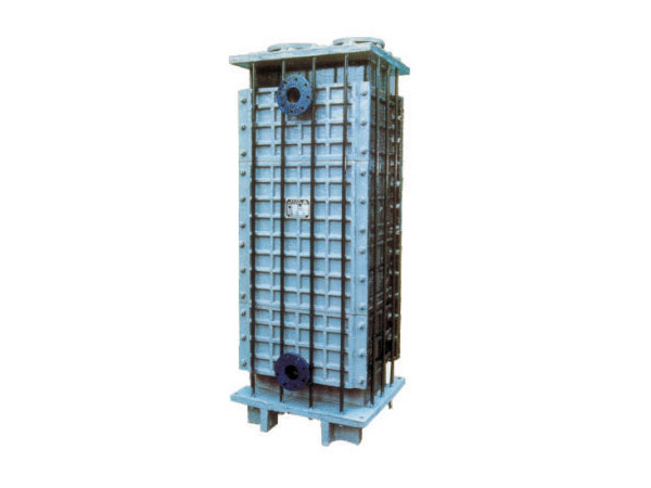 矩形塊孔式石墨換熱器是由若干數(shù)量的立方、矩形石墨換熱塊、上下石墨封頭及其金屬蓋板和兩側(cè)金屬側(cè)蓋等主要零件組成,各零件之間用襯墊密封,上下金屬蓋板和兩側(cè)蓋板,用長拉桿螺栓連接與石墨塊體緊固為一體。它具有結(jié)構(gòu)簡單、使用可靠、維修方便和優(yōu)良的抗熱沖擊性、抗震動(dòng)性。